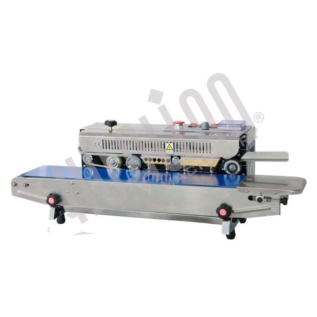 Запайщик оснащен электронным температурным контроллером для точной регулировки температуры запайки, зазоры между запаивающими и охлаждающими блоками имеют регулировку. Благодаря этому для упаковки и запайки можно использовать плотные термосвариваемые материалы. Скорость конвейера также регулируемая.