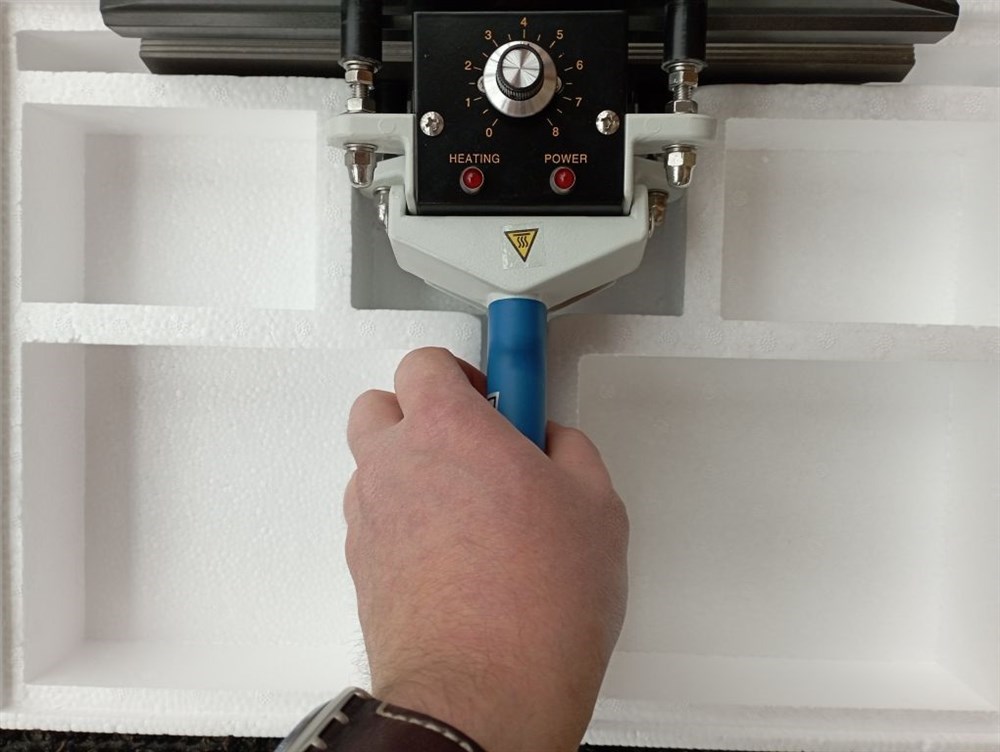 FKR 300 – еще одна модель из серии ручных запайщиков постоянного нагрева в виде клещей. Длина запаечной планки в данной модели – 300 мм, мощность нагрева 500 Вт. Две запаечные губки (верхняя и нижняя) формируют прочный шов шириной 10 мм.