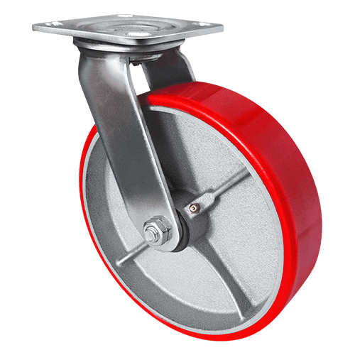 Большегрузные поворотные колёсные опоры с шинкой из износостойкого полиуретана scp 63 имеют грузоподъемность 360 кг. Диаметр колеса 150 мм.
